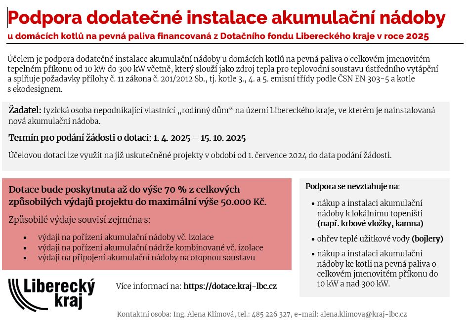 Liberecký kraj vyhlásil nové dotace na akumulační nádrže, které slouží ke zlepšení účinnosti kotlů na pevná paliva. Tato iniciativa má za cíl podpořit ekologické vytápění a optimalizovat otopné soustavy. Zájemci o dotace se mohou informovat o podmínkách a postupu žádosti.