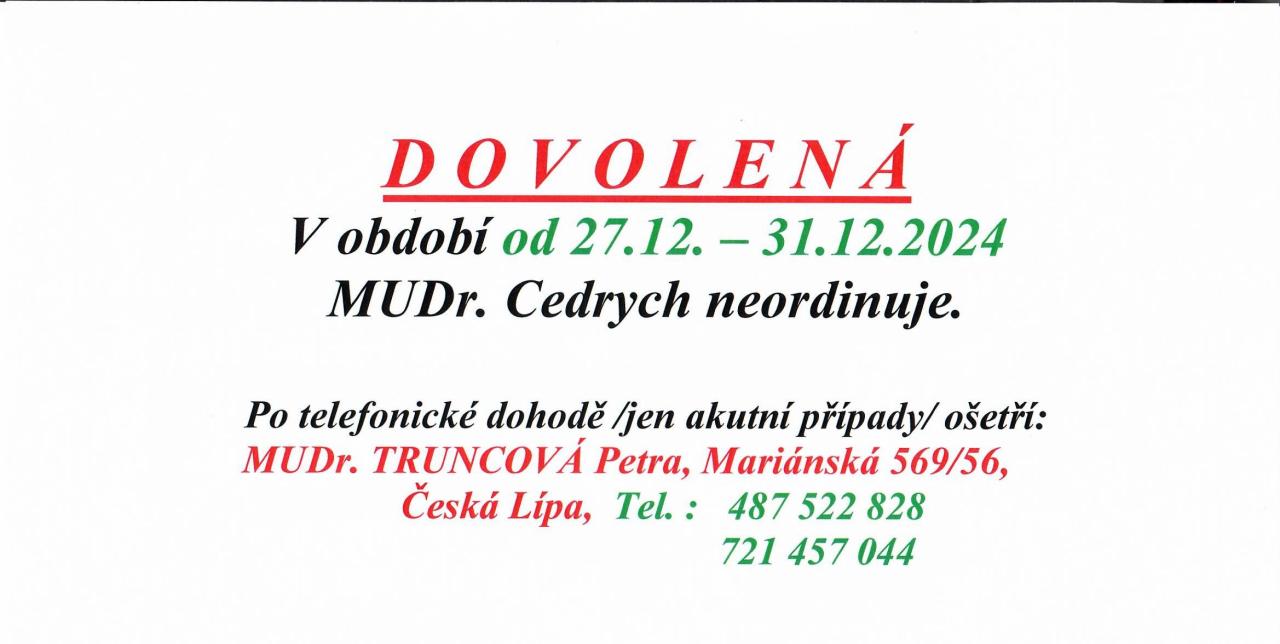 Aktuální informace - Informace-uzavření ordinace praktického lékaře 27.12.-31.12.2024