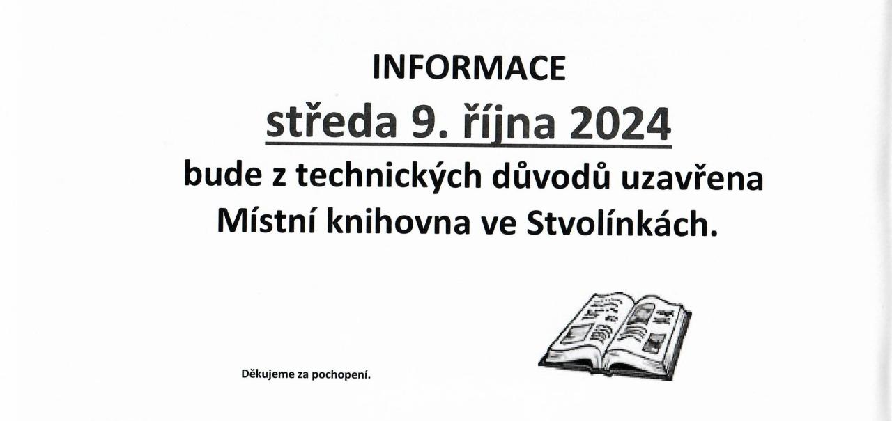 Aktuální informace - INFORMACE-ve středu 9.října 2024 bude uzavřena knihovna Stvolínky