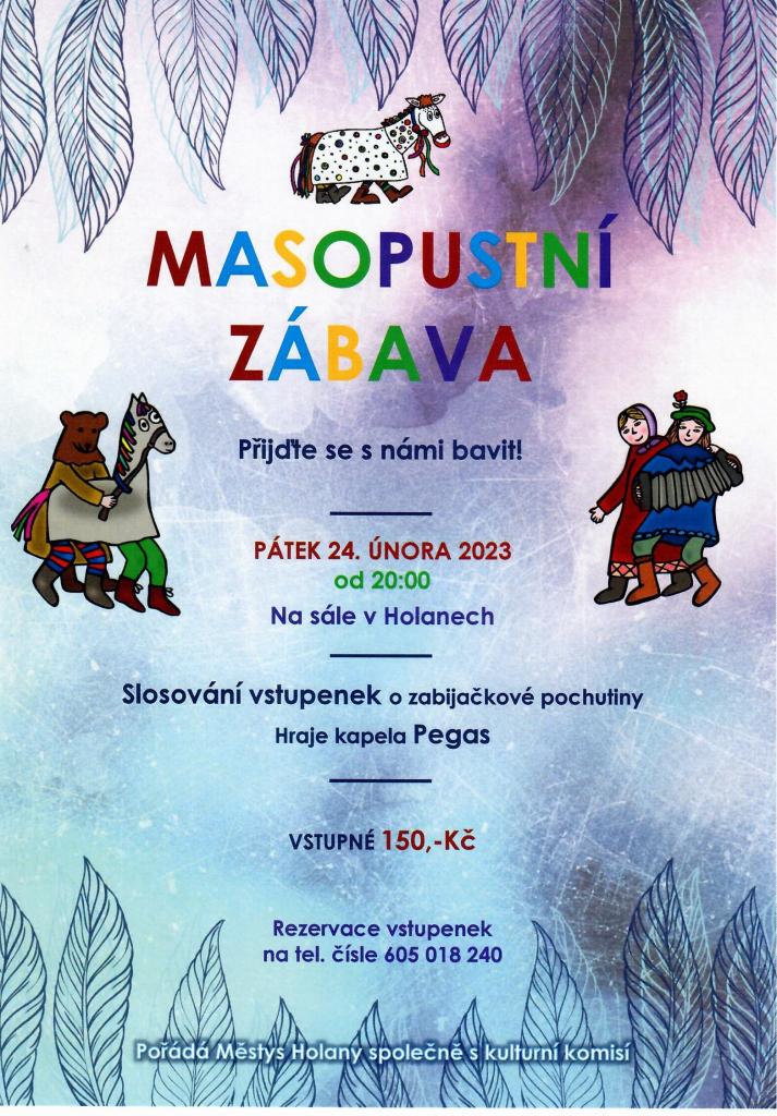 Aktuální informace - Městys Holany-Pozvánka na Masopustní zábavu 24.02.2023