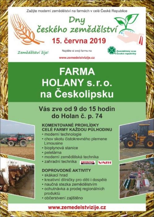 Aktuální informace - Pozvánka-Farma Holany, Dny českého zemědělství 15.06.2019