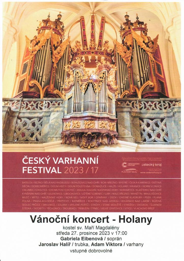 Aktuální informace - Pozvánka-Vánoční koncert, Holany 27.12.2023 od 17.00 hod. kostel sv.Maří Magdaleny