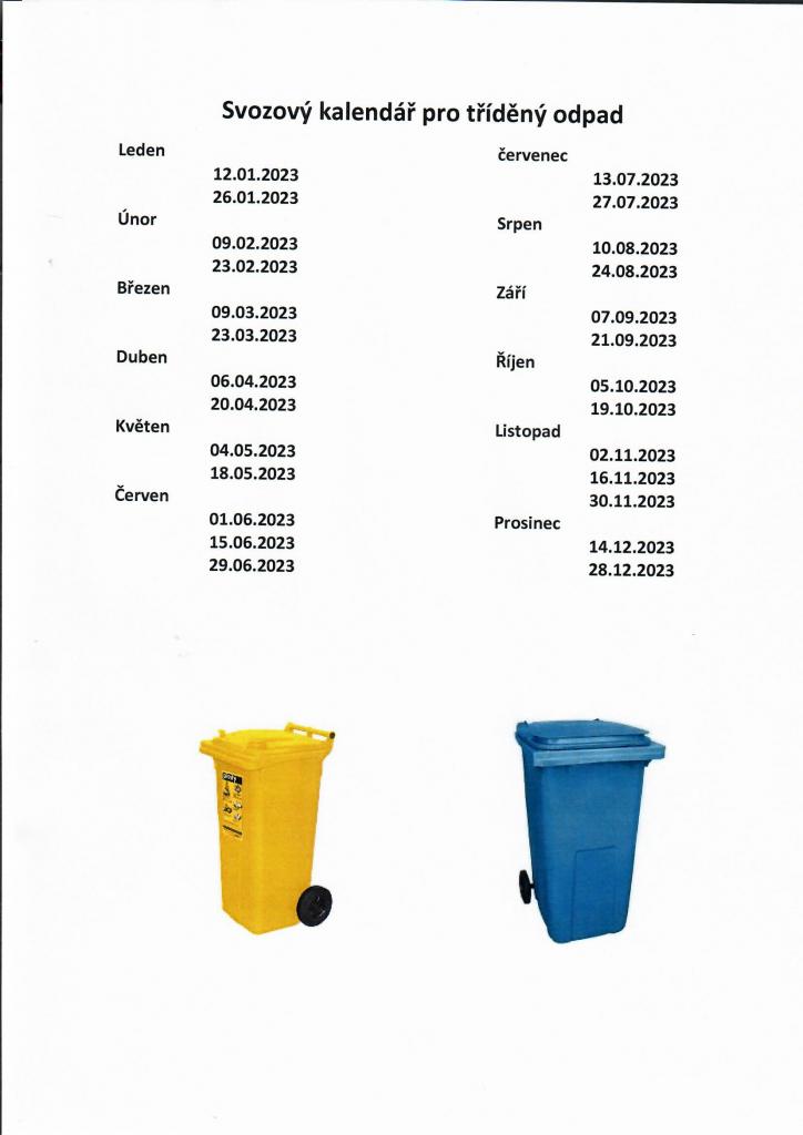 Aktuální informace - Svozový kalendář pro rok 2023 tříděný odpad
